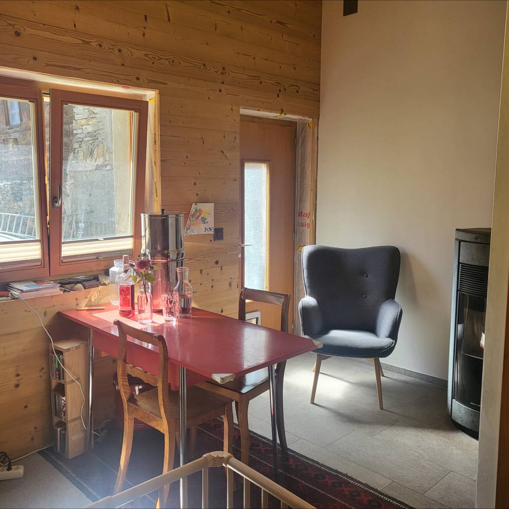 2 caves Le salon est équipé d’un poêle à pellets et d’un fourneau en pierre ollaire et en complément chauffage électrique