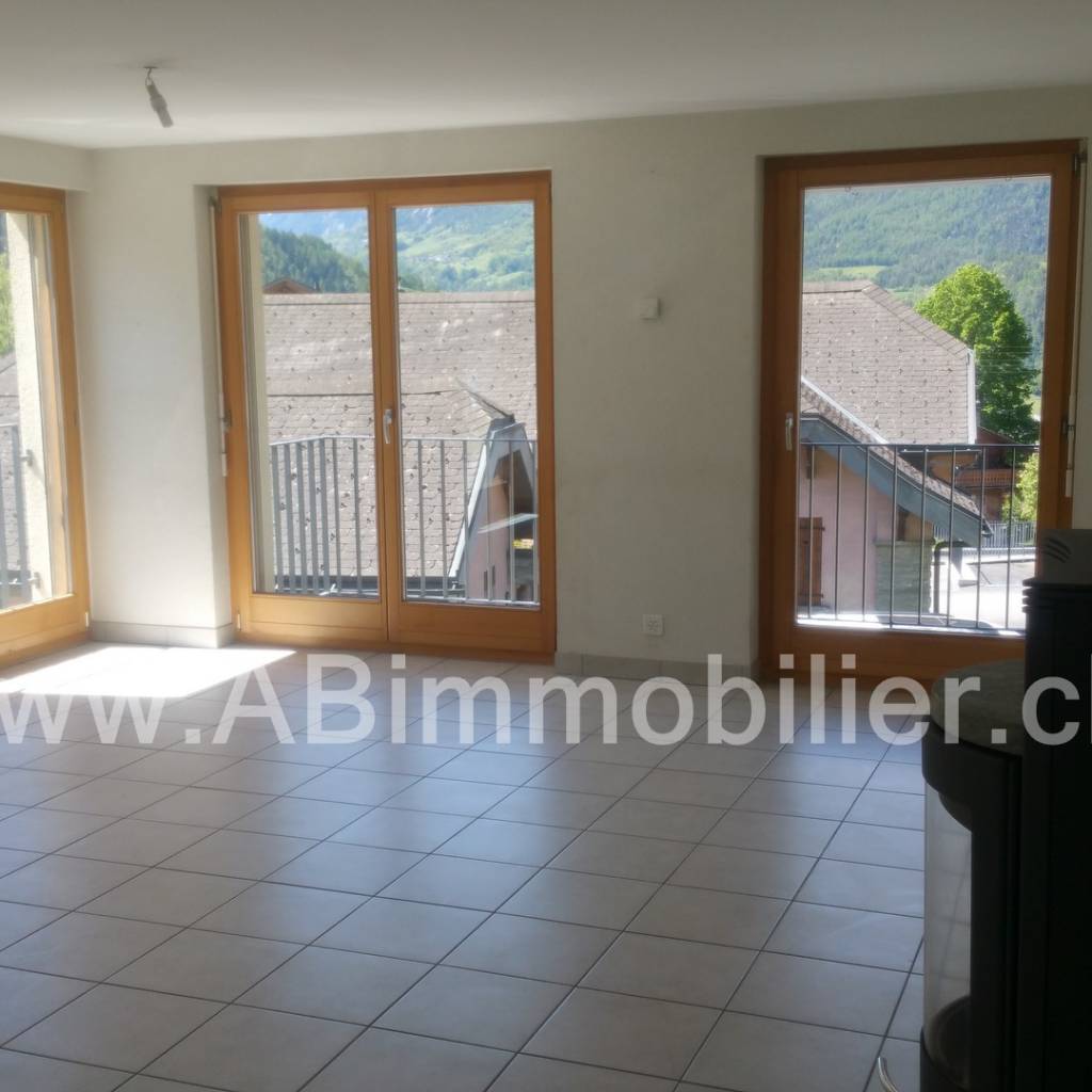 3 pièces ½ (2 balcons avec vue magnifique) Séjour avec cuisine ouverte entièrement équipée, 2 chambres, 1 salle de bain douche / WC + 1 WC séparé, place de parc et cave