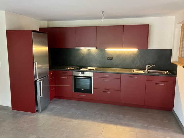 Cuisine toute équipée donnant sur un bel espace repas Salon,