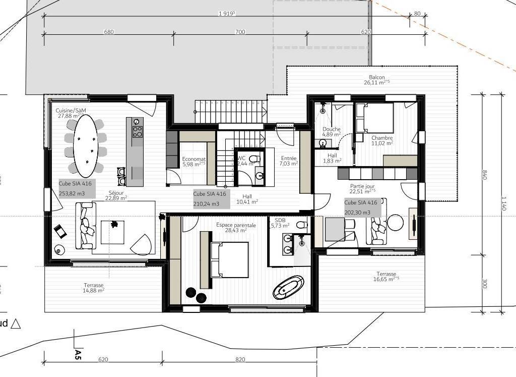 Chalet BRUSON villa individuelle sur 3 niveaux de 210 m2.Projet de construction, villa individuelle sur 3 niveaux de 210 m2.