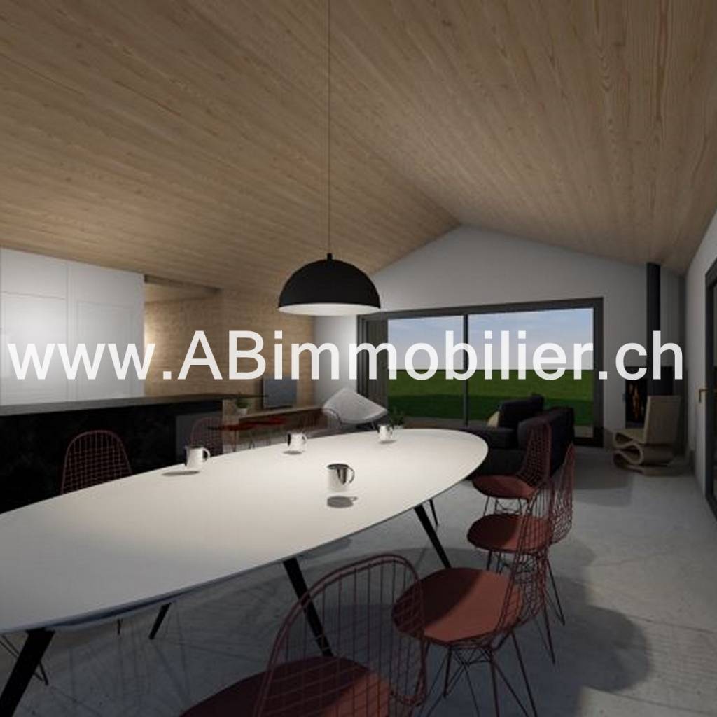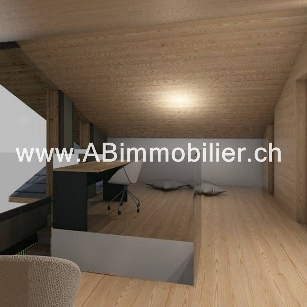 L’étage mezzanine est composé d’un espace bureau, d’une pièce d’eau et d’une chambre entourée d’espace de rangements. Terrain de 1000m2 4 places de parc extérieures Prix 2'500'000.- Réf 23107