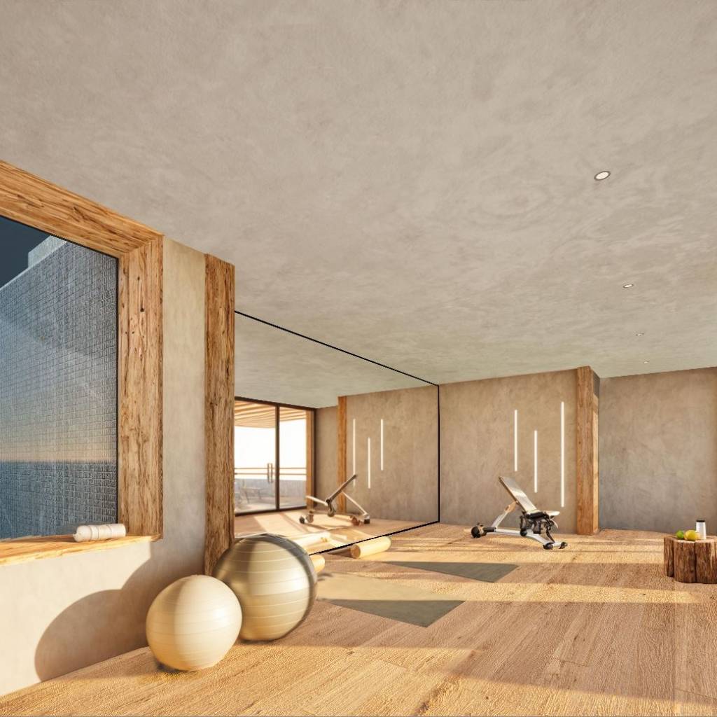• Salle de sport unique, dotée d’un mur en verre permettant d’observer l’intérieur de la piscine.